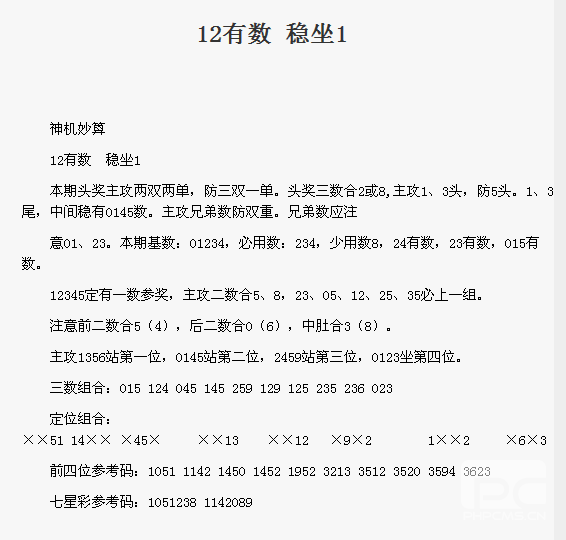 【神机妙算】第1732期预测信息<特区报>