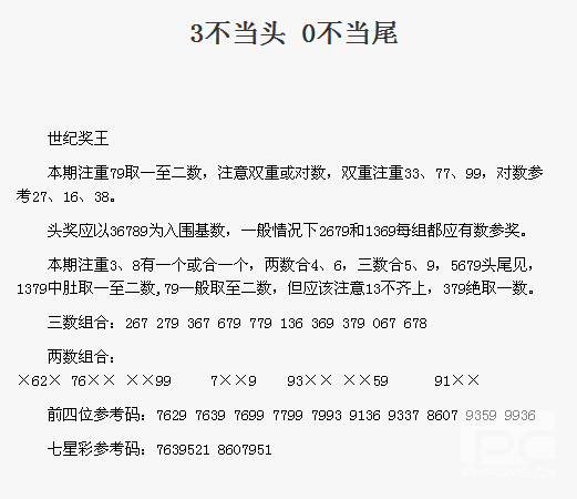 【世纪奖王】第1735期预测信息<特区报>