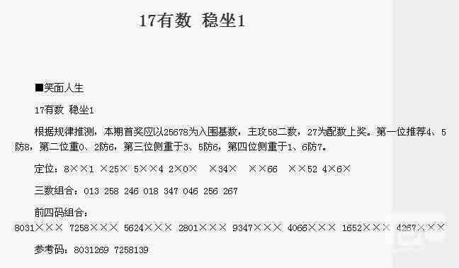 【笑面人生】第1736期预测信息<特区报>