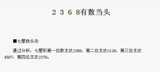 【七星铁头功】第1738期预测信息<特区报>