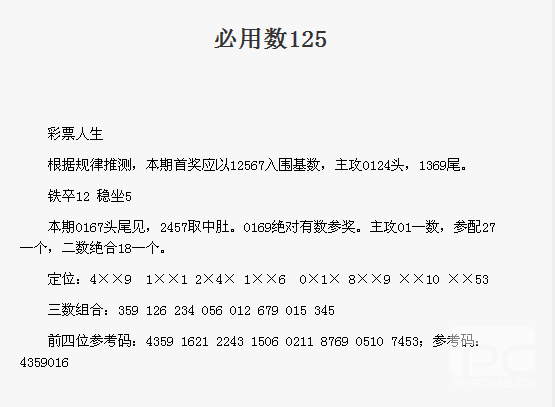 【彩票人生】第1738期预测信息<特区报>