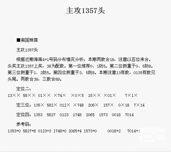 【南国神算】第1739期预测信息<特区报>