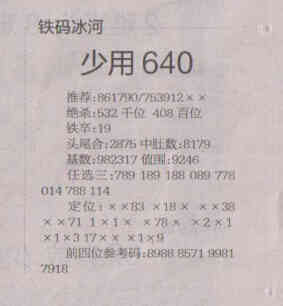 【铁码冰河】第1750期预测信息<特区报>