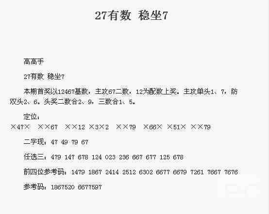 【高高手】第1752期预测信息<特区报>