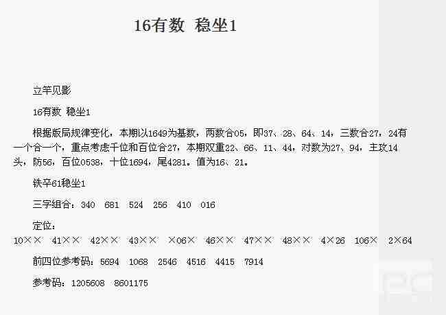 【立竿见影】第1753期预测信息<特区报>