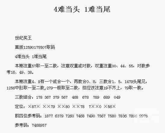 【世纪奖王】第1759期预测信息<特区报>