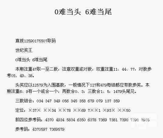 【世纪奖王】第1761期预测信息<特区报>