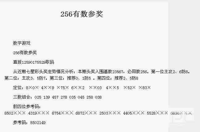 【数字游戏】第1762期预测信息<特区报>