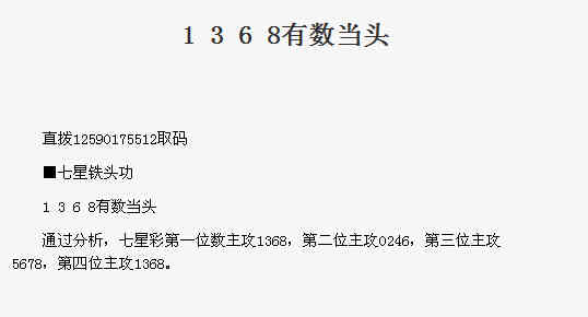 【七星铁头功】第1762期预测信息<特区报>