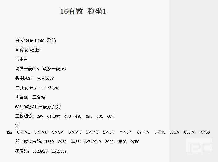 【玉中金】第1762期预测信息<特区报>