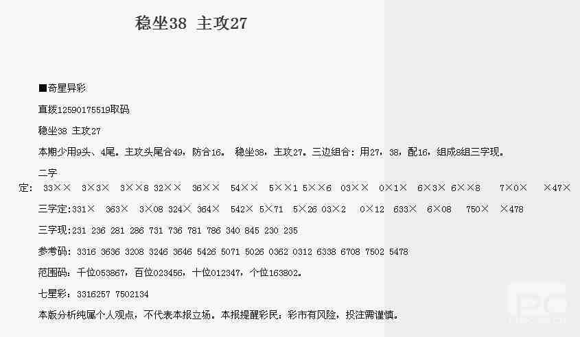 【奇星异彩】第1763期预测信息<特区报>