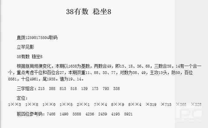 【立竿见影】第1764期预测信息<特区报>