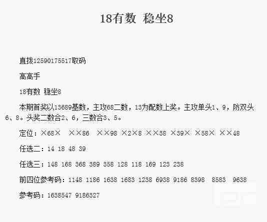 【高高手】第1764期预测信息<特区报>