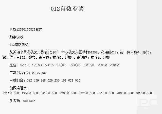 【数据游戏】第1765期预测信息<特区报>