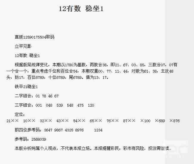 【立竿见影】第1768期预测信息<特区报>