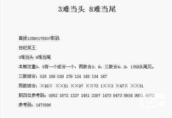 【世纪奖王】第1768期预测信息<特区报>