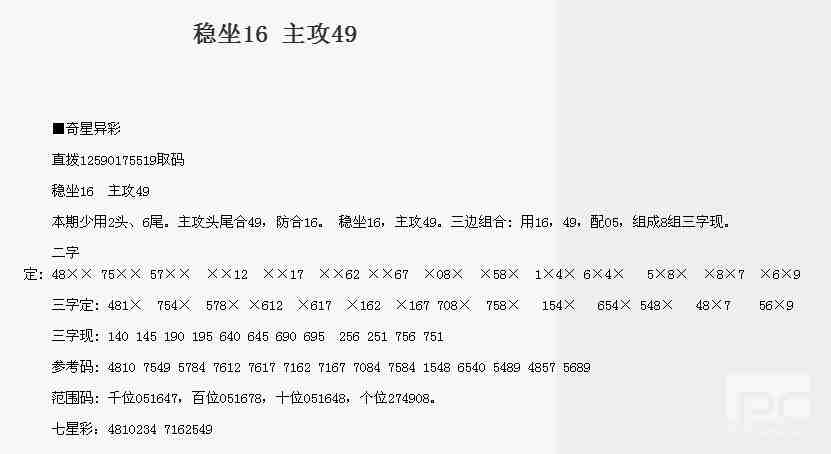 【奇星异彩】第1769期预测信息<特区报>