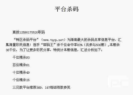 【平台杀码】第1770期预测信息<特区报>