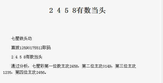 【七星铁头功】第1770期预测信息<特区报>