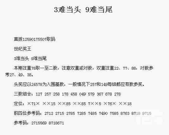 【世纪奖王】第1770期预测信息<特区报>