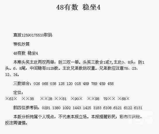 【神机妙算】第1771期预测信息<特区报>
