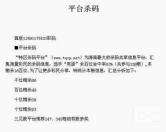 【平台杀码】第1771期预测信息<特区报>