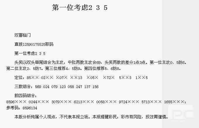 【双喜临门】第1773期预测信息<特区报>