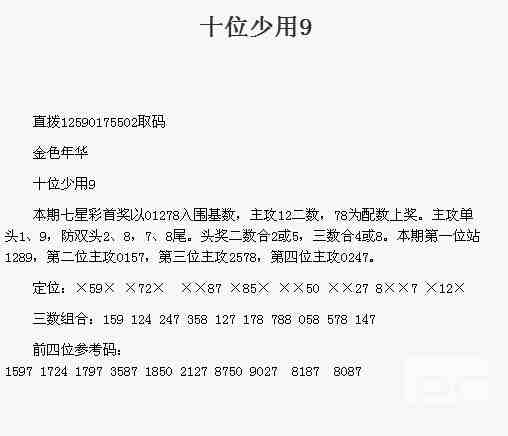 【金色年华】第1773期预测信息<特区报>