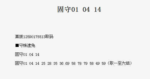 【守株待兔】第1775期预测信息<特区报>