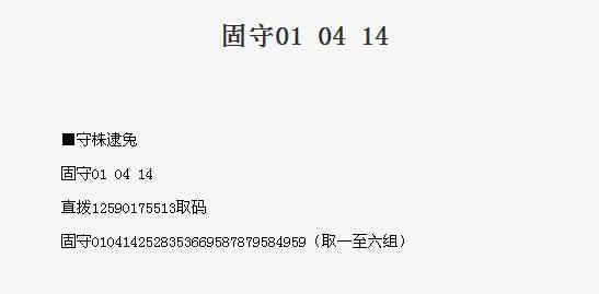 【守株待兔】第1778期预测信息<特区报>