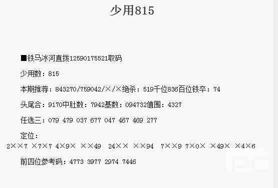 【铁马冰河】第1778期预测信息<特区报>