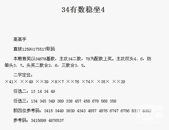 【高高手】第1779期预测信息<特区报>
