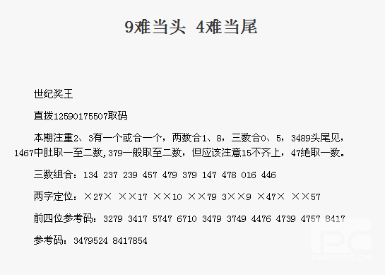 【世纪奖王】第1779期预测信息<特区报>