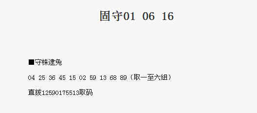 【守株待兔】第1784期预测信息<特区报>