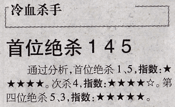 【冷血杀手】第966期预测信息<特区报>