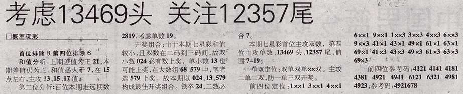 【概率玩彩】第966期预测信息<特区报>