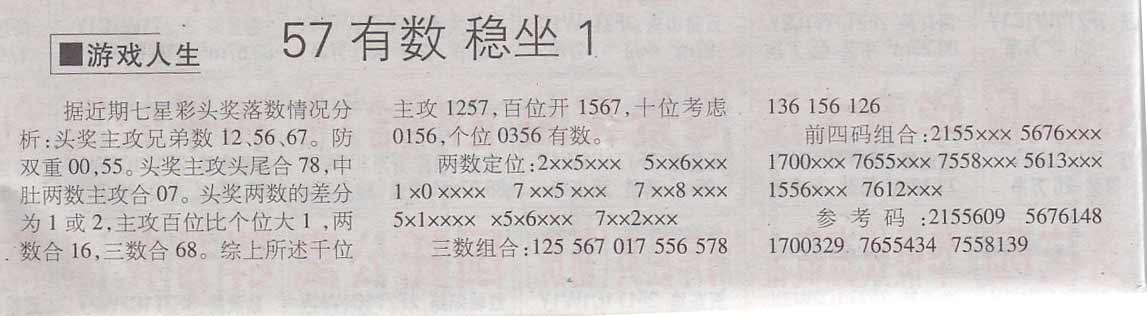 【游戏人生】第973期预测信息<特区报>