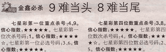 【金鑫必杀】第973期预测信息<特区报>