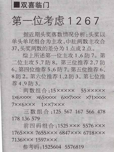 【双喜临门】第975期预测信息<特区报>