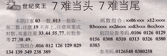 【世纪奖王】第975期预测信息<特区报>