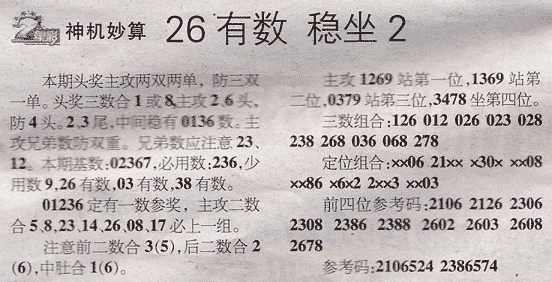 【神机妙算】第975期预测信息<特区报>