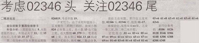 【概率玩彩】第975期预测信息<特区报>