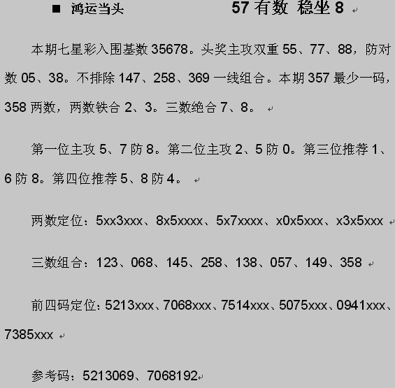 【鸿运当头】第976期预测信息<特区报>