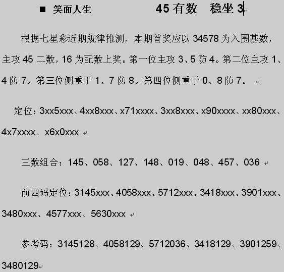 【笑面人生】第976期预测信息<特区报>
