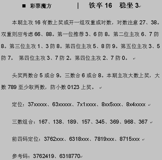 【彩票魔方】第976期预测信息<特区报>
