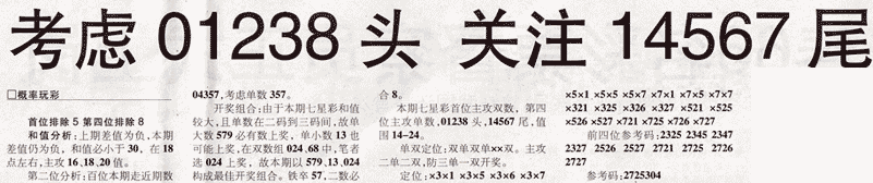 【概率玩彩】第976期预测信息<特区报>