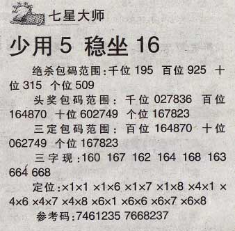 【七星大师】第977期预测信息<特区报>