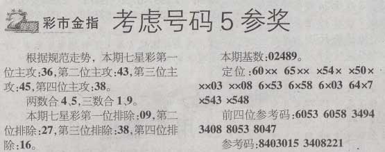 【彩市金指】第977期预测信息<特区报>