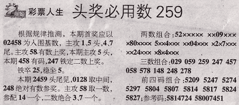【彩票人生】第984期预测信息<特区报>
