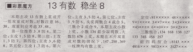 【彩票魔方】第985期预测信息<特区报>